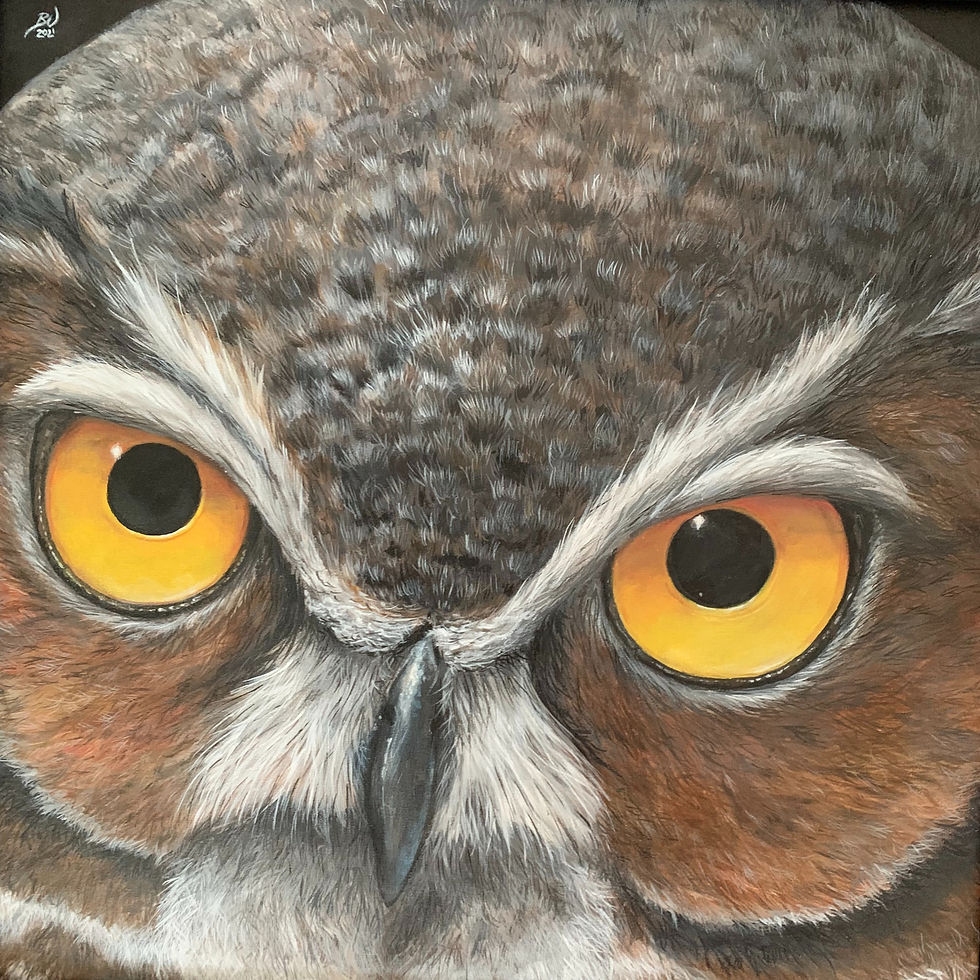 Great Horned Owl 14"x14" ORIGINAL ARTWORK